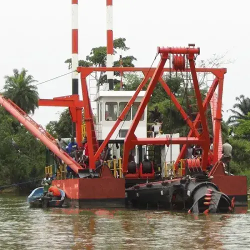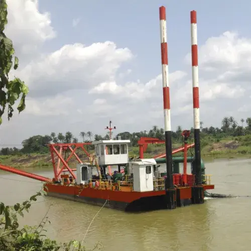 Cégünk 2500 m³-es vágógépes folyami kotróberendezése homokszíváshoz önjáró vagy nem önjáró, hordozható folyamvágó szívókotró. A hajótest bontható és dobozszerű felépítésű, szétszerelhető típusa könnyen munkahelyi összeszereléssel és ennek megfelelően közúton, vasúton és konténerben szállítható, kényelmes a beszerelésben és a munkahelyi áthelyezésben. Az energiaellátó rendszer elektromos rendszerre vagy dízelmotoros hajtásrendszerre tervezhető az ügyfelek igényei szerint. A folyótisztító vágó szívó kotrógép berendezései fújtatók: mozgószerkezet, vágólétra-emelő berendezés, csapok és fedélzeti daru.
