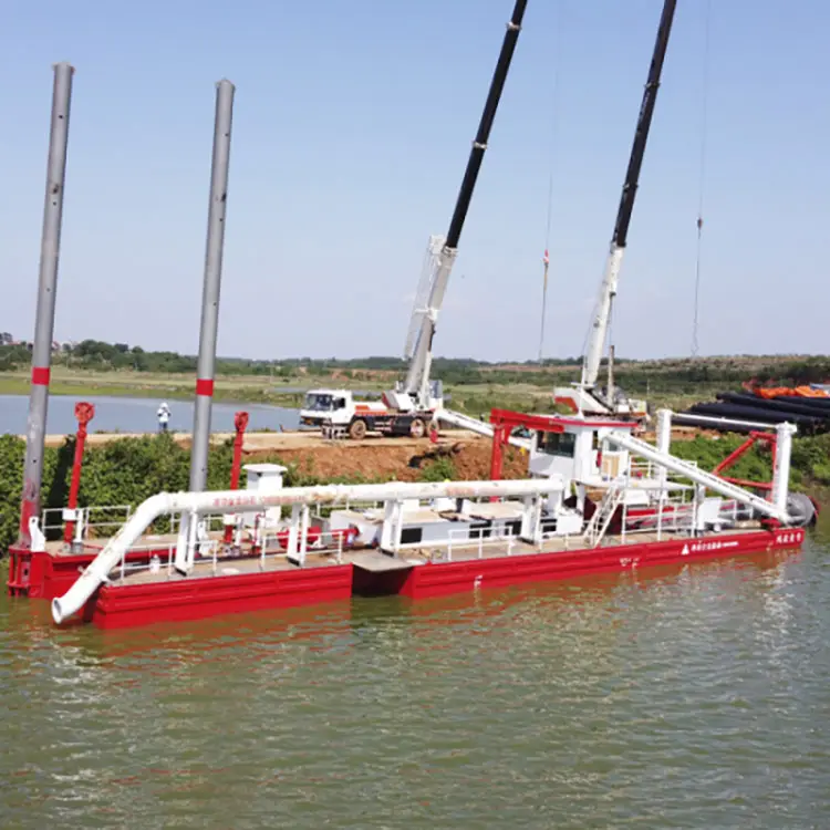 Cégünk Cummins dízelmotoros vágó szívó folyami homokkotró gép önjáró vagy nem önjáró, hordozható vágó szívó folyami homokkotró gép Cummins dízelmotorral. A hajótest bontható és dobozszerű szerkezettel rendelkezik, szétszerelhető típusa a munkahelyen könnyen összeszerelhető, és ennek megfelelően közúton, vasúton és konténerben szállítható, kényelmesen beépíthető és egyikről a másikra mozgatható munkahely. Az energiaellátó rendszer elektromos rendszerre vagy dízelmotoros hajtásrendszerre tervezhető az ügyfelek igényei szerint. A Cummins dízelmotorral szerelt vágófelszívású folyami homokkotró gép felszerelései fújtatók: tolószerkezet, vágólétra-emelő berendezés, csapok és fedélzeti daru.